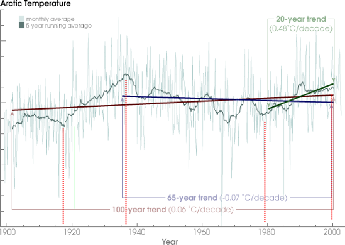 This NASA graph shows arctic temperature from about 1900 to 2000.
