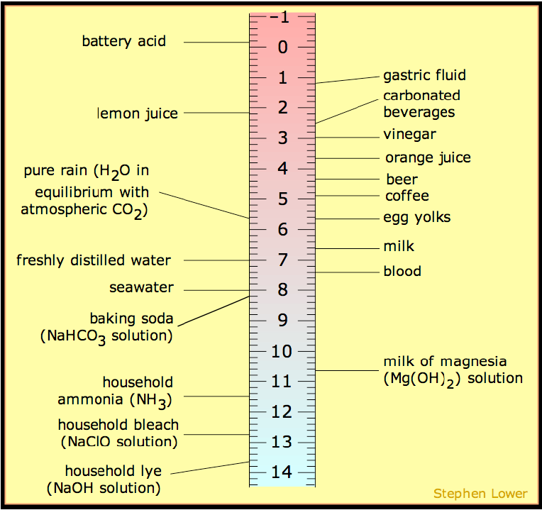 pH of about 8. Figure 1 shows the pH scale with the pH of common solutions indicated. Freshly