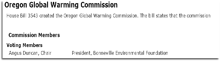 1. Angus Duncan is chair of the Oregon Global Warming Commission (http://www.oregon.gov/ENERGY/GBLWRM/GWC/GWC-
