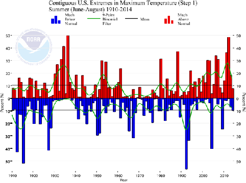 The index he refers to, of course, is the one that counts a mild winter as extreme. It is the same index which regards 1936 as one of the least extreme years, although it had the 2nd coldest winter on record, and the hottest summer. NOAA’s system is so sophisticated that it averages the two together to make the year average!