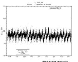 Is stratospheric ozone "disappearing" around the world? No. The adjacent plot is from Mauna Loa Observatory and changes, if any, are trivial compared with variability throughout the year.