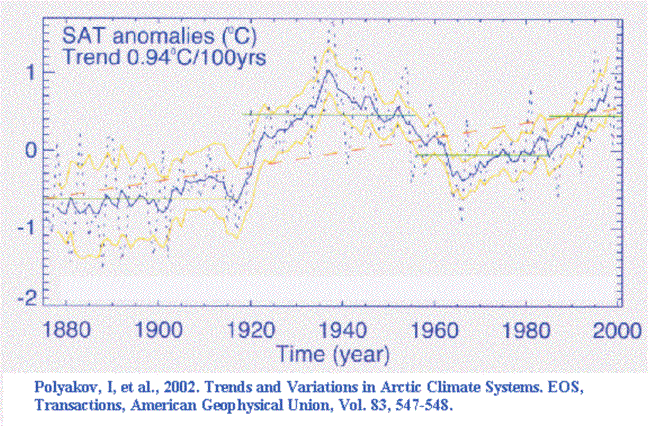 Polyakov, I, et al.2002,Trends and Variations in Arctic Climate Systems. EOS, Transactions,