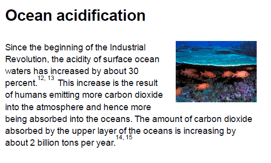 NASA says “Since the beginning of the Industrial Revolution, the acidity of surface ocean waters has increased by about 30 percent”