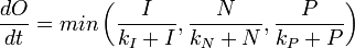 below, the growth of population O is a function of the minimum of three Michaelis-